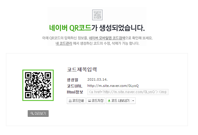 5. QR코드 생성이 완료되었습니다. 이제 QR코드르 저장하여 자신이 원하는데 전송하시면 됩니다.